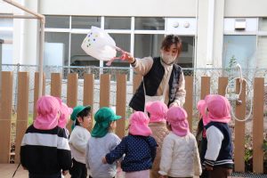 ふたば組さんたちも自分たちで作ったたこでたこあげをしました。